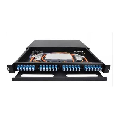 Los 24 paneles de remiendo a dos caras portuarios 48Fibers del LC/recinto que desliza el tipo 1U 19" del carril estante montado, negro